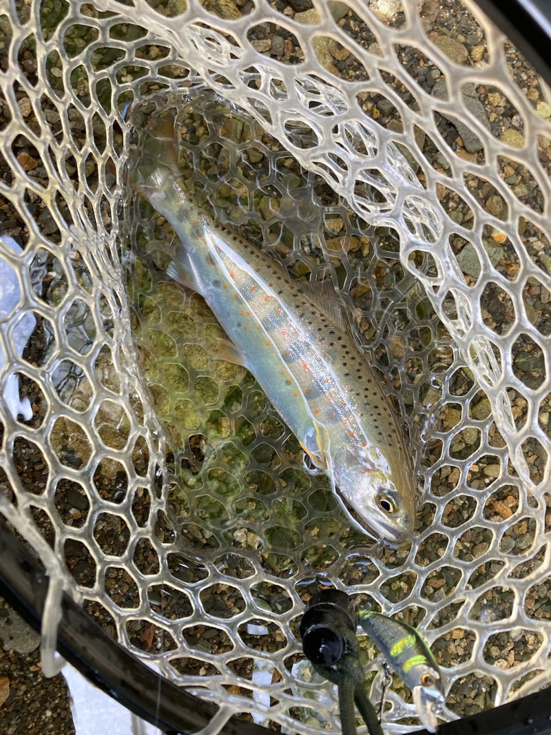 銀毛化の最中で、これから鱒になろうとしているようです!本流から下流エリアらしい1本。
